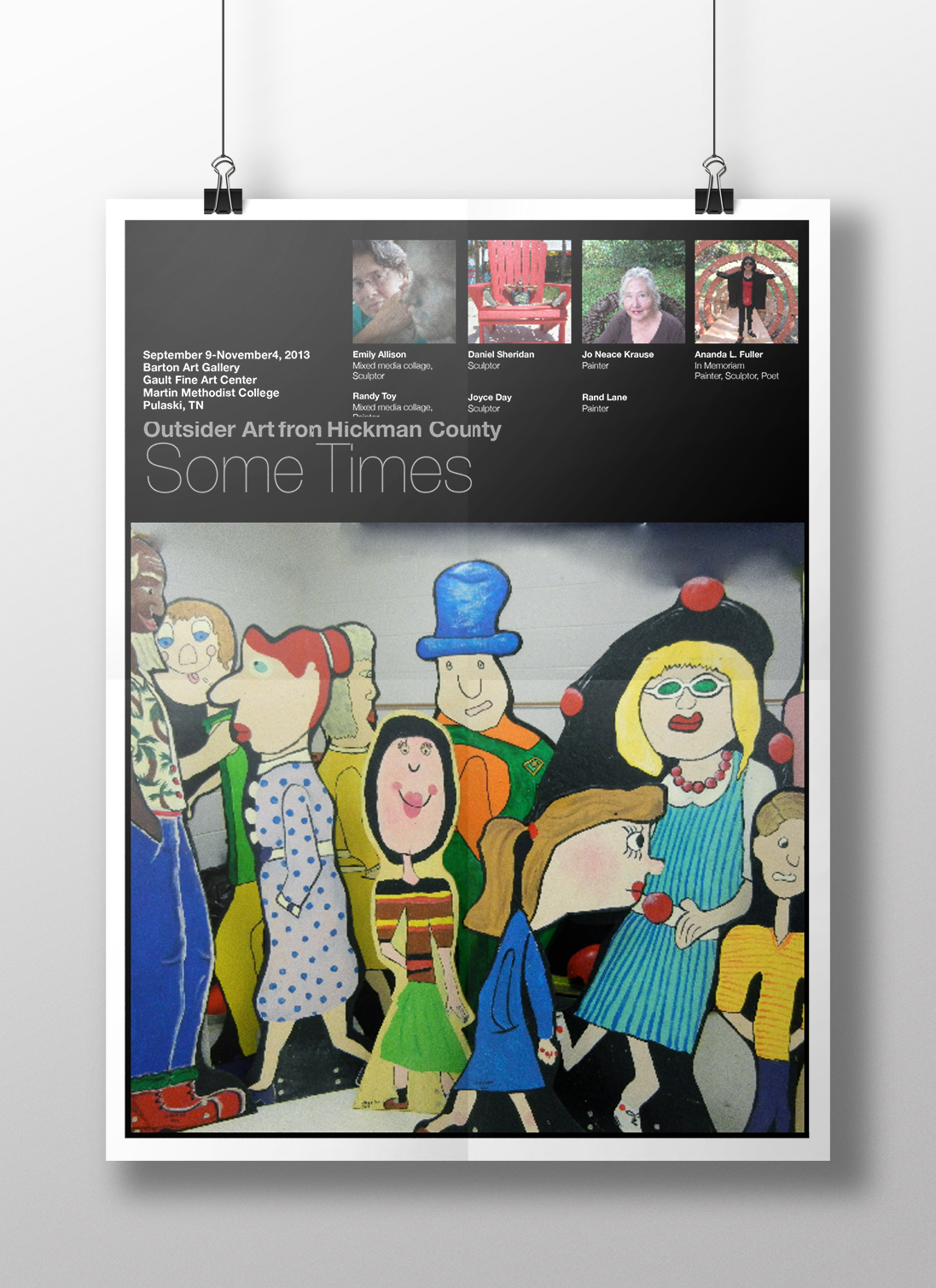 Was curated by Clarissa Lega for the Barton Art Gallery at Martin Methodist College. Display involved sculptural and painted pieces from four regional artists.
